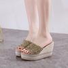 Slope Heel Slippers Super High Heels Slippers Waterproof Platform Sandals Thick Sole Sequins Rhinestone Slippers Women's Outside