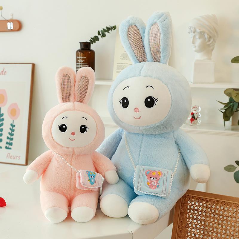 Cute Little Rabbit Doll Plush Toy Girl Sleeping with Her Doll On The Bed Cute Home Decoration Gift for Women