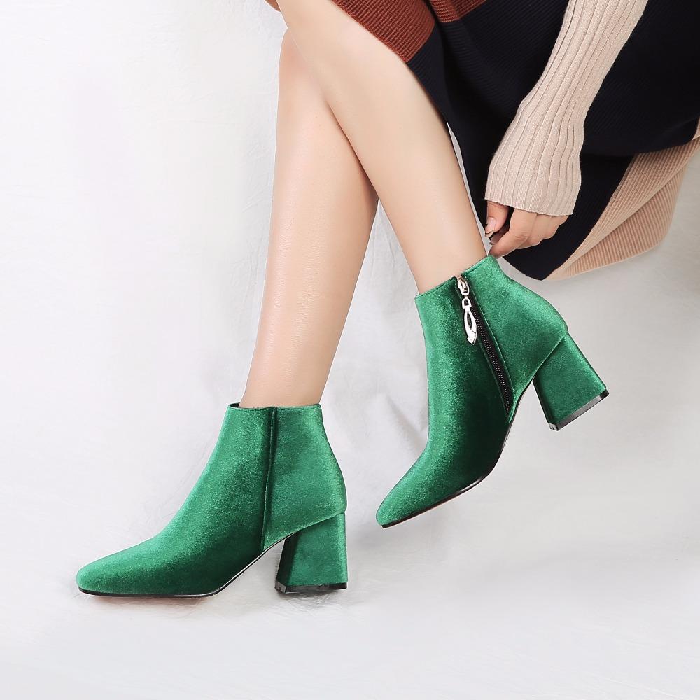 Brand Velvet Women's Ankle Boots Winter Fashion Short Boot Thick Medium Heels Short Party Shoes Large Size 48 Black Red Green
