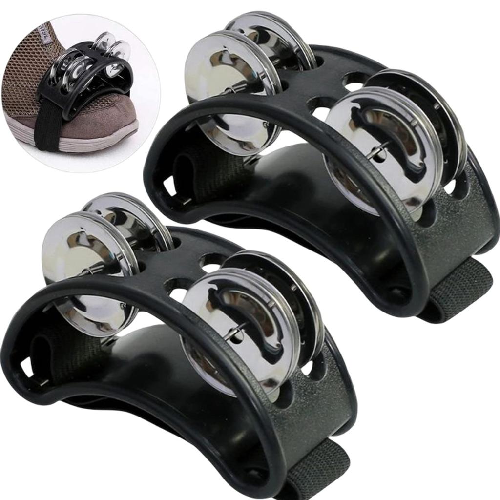 Leiasnow Tambourine Percussion Foot Tambourine Foot Bells Foot Instrument (Black, 2 Pieces)