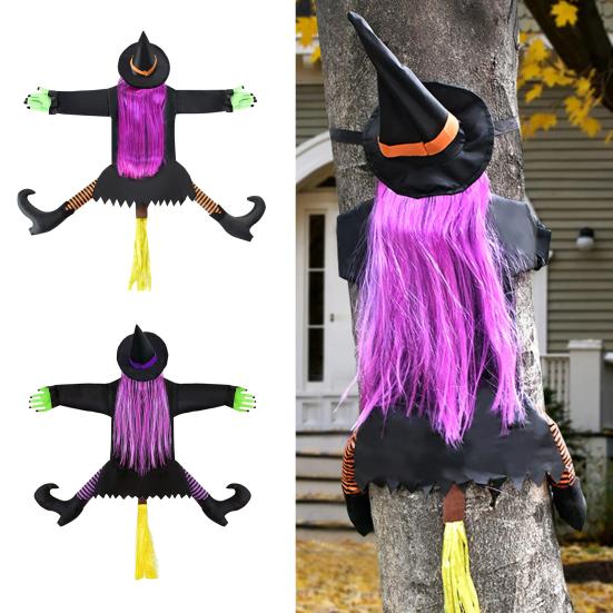 Large Crashing Witch Into Tree Halloween Decoration Outside Flying Witch Hitting Tree