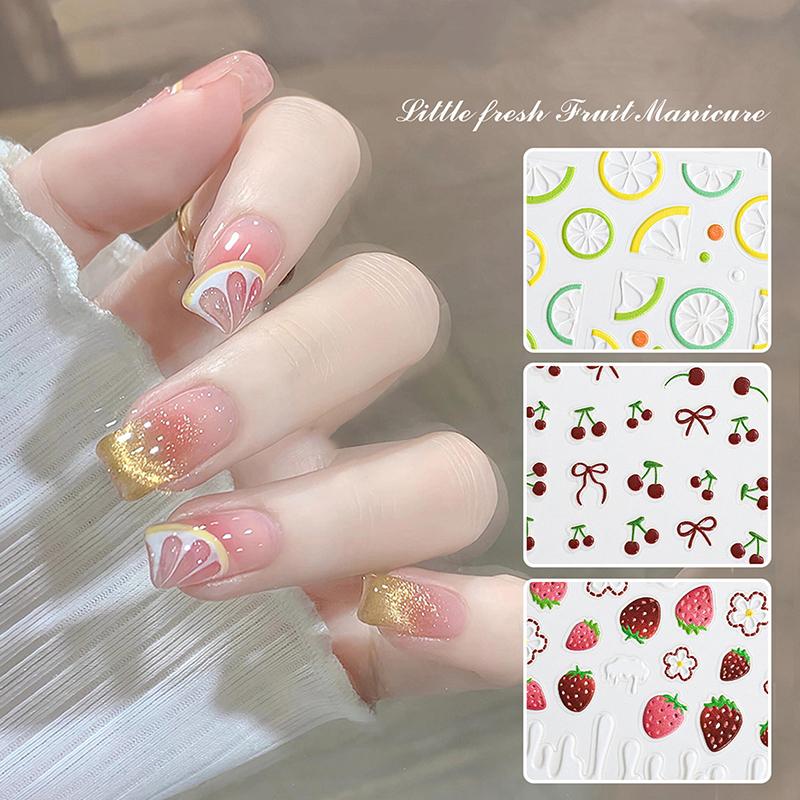 Lemon Cherry Strawberry Diy 5D Soft Embossed Relief Self Adhesive Nail Art Decorations Stickers Decal