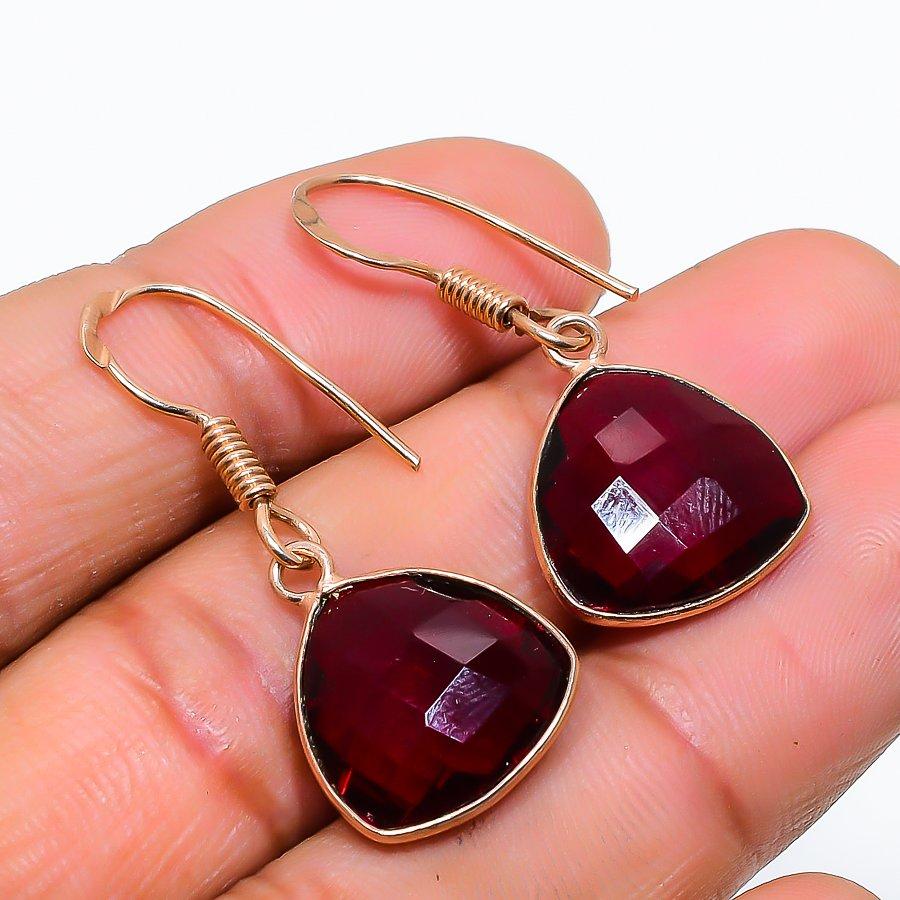 Mozambique Garnet Gemstone 925 Solid Sterling Silver Jewelry Earring 1.38" GK-5804