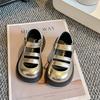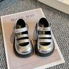 Kids Leather Shoes Round Toes Soild Color Girls Performance Shoes Hollowed-out 2025 Summer New Children Flat Shoes Hook&loop