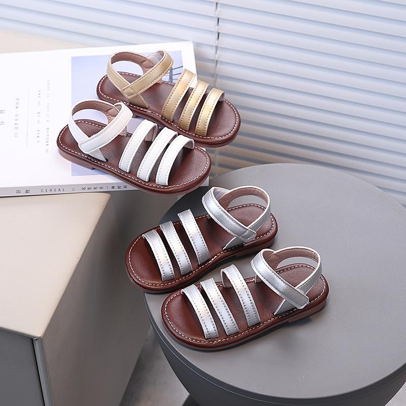 Kids Sandals Soild Color Retro Open Toes Girls Casual Shoes for Summer 2025 New Children Beach Shoes Soft Sole Non-slip Classic