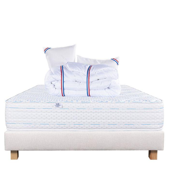 Mattress Set 140x190 Cm, Thermotec, 24 Cm, Firm, Summer/winter Side + Beige Bed Base 20cm + 2 Pillows + Duvet