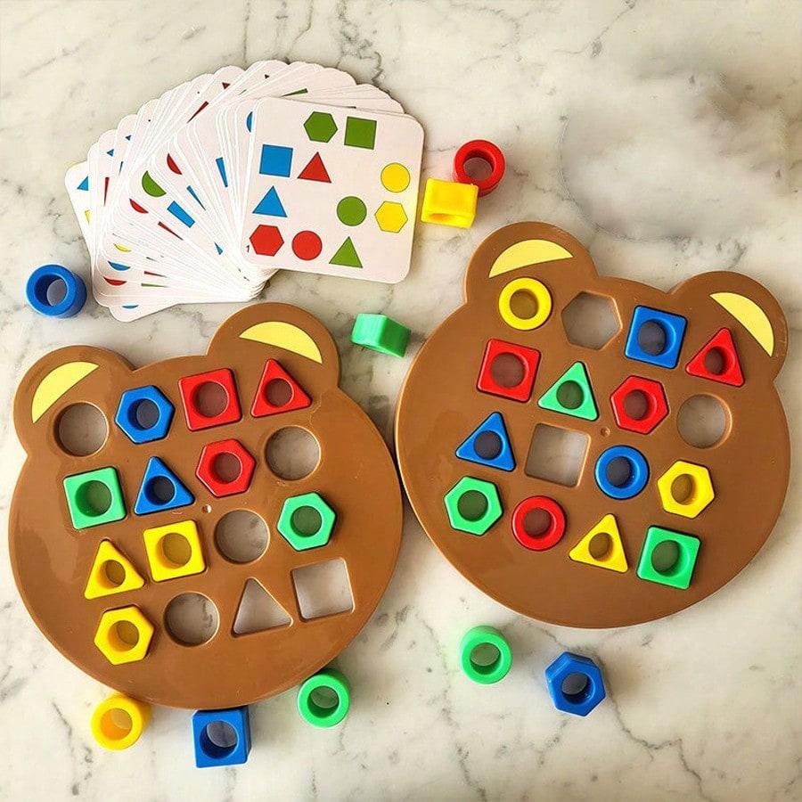 Shape Matching Game Color Sensory Educational Toy,New Children Puzzles Geometric Shape Quick Matching Board, Cute Bear Shaped Checkerboard (2 Players)