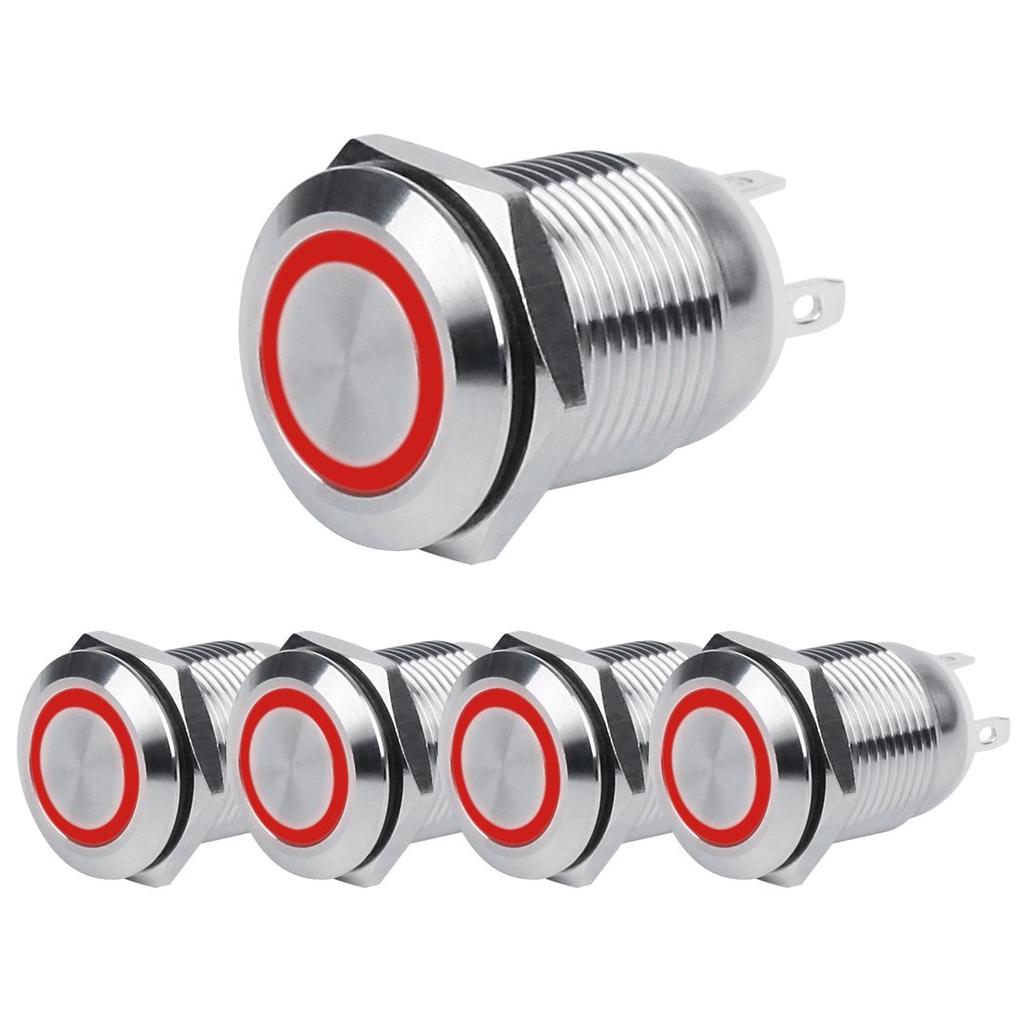 Andux Space Momentary Waterproof Push Button Switch with LED Set of Light, 12mm, 5, JSANKG-02 (Red)