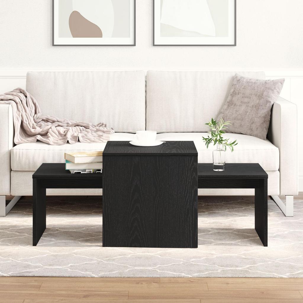 Creative Design Black Oak Side Table Set, Coffee Table and Side Table for Living Room, Study, Balcony, Hotel, Café and Outdoor Bar. 100x48x40 Cm