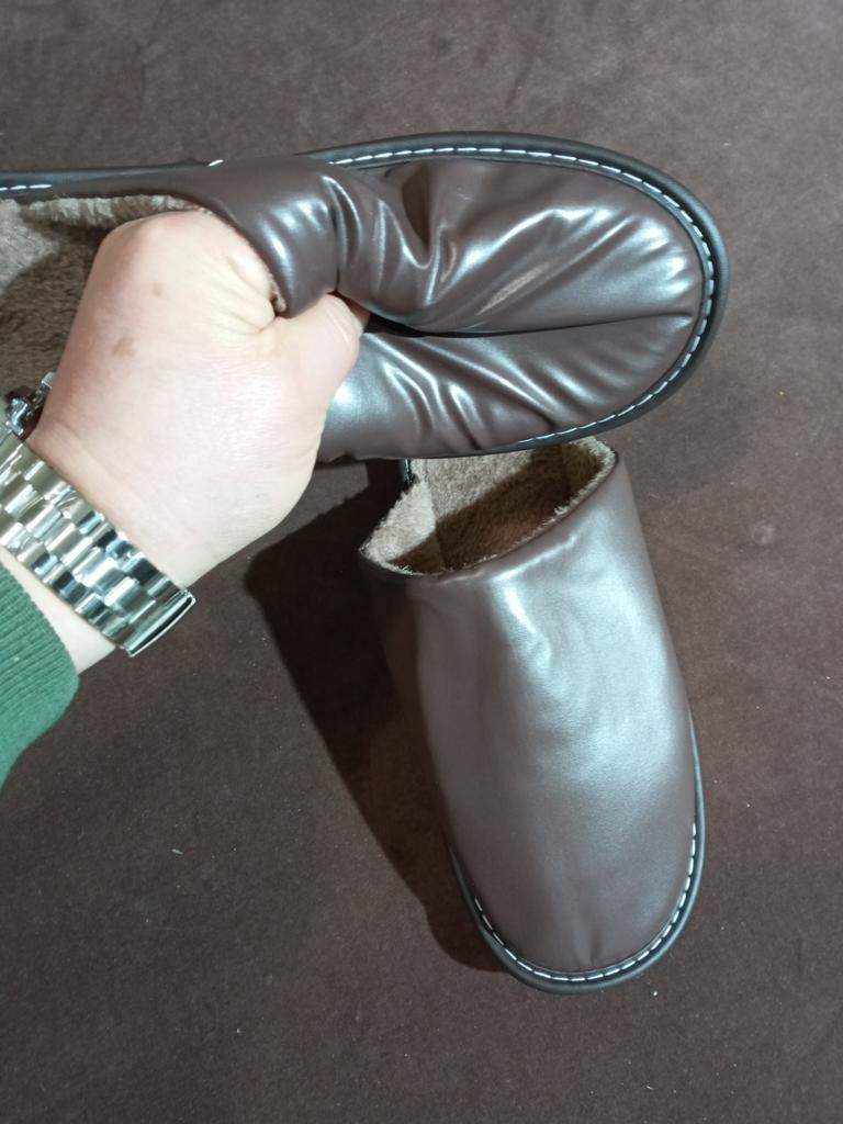 Non-Slip Waterproof Winter Leather Slippers for Couples - Warm Plush Indoor Footwear