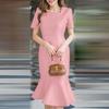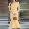 ZANZEA Women Casual Square Neck Short Sleeve Fishtail Slim Dress