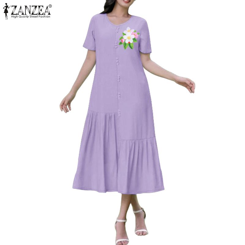 ZANZEA Women Casual Round Neck Short Sleeve Summer Floral Dress