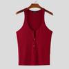 INCERUN Men Deep U Neck Sleeveless Buttons Rib Fitted Casual Tank Tops