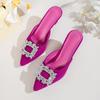 High Heeled Slippers for Women New Style with Pointed, Fine Heel Rhinestone Square Buckle, Half Toe Cool Mop Women's Sandals