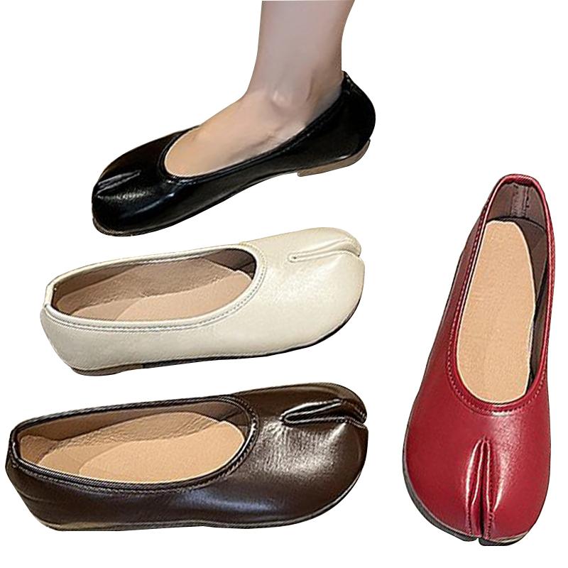 Japanese Style Tabi Ninja Shoes Women Cozy Leather Flats Split Hoof Toe Loafers Femme Mary Jeans Mocasines Ladies Ballerina Shoe