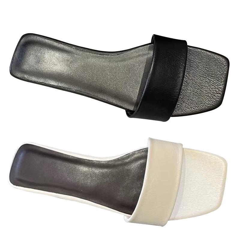 Ladies New Black White Flat Slippers Women Genuine Leather Peep Toe One Strap Mules Shoes Woman Summer Slides Comfort Clogs