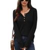 New Solid-color Round-neck Button Loose Long-sleeved T-shirt for Women In Autumn and Winter