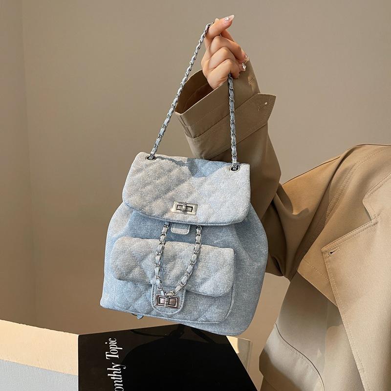 Early Autumn New Fashion Xiaoxiang Denim Embroidery Thread Strap Chain Bag Single Shoulder Double Shoulder Women's Bag