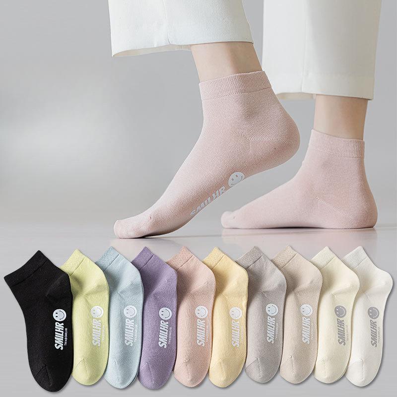 Female Spring and Summer Thin Foot Smile Shallow Mouth Breathable Boneless Low Tube Cotton Socks