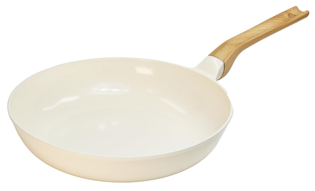 Nansen Japan Lightweight and Ceramic Frying White with White Easy-to-Use Pan, Wood-Look Handle, Die-Cast Finish, 28cm,