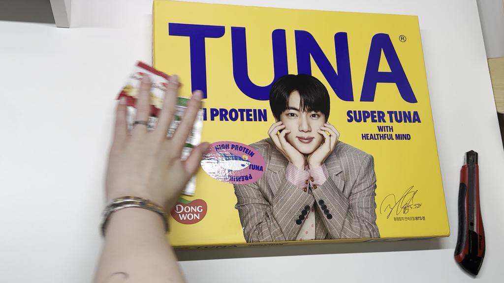 DONGWON TUNA BTS JIN “Super Tuna” Edition Gift Set (Light Standard 135 G × 12) + 2 Super Seal Stickers