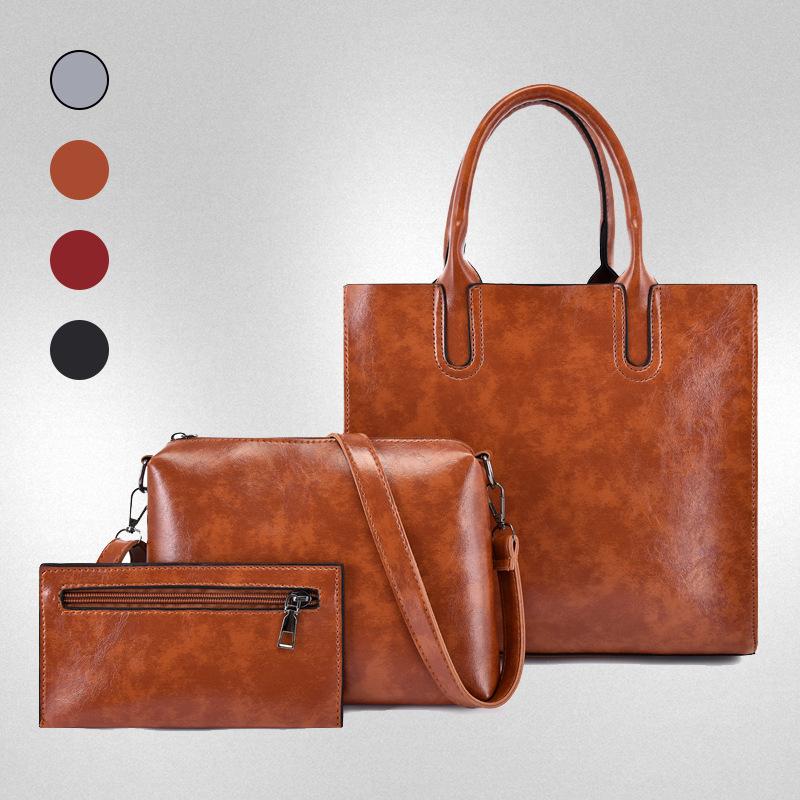 New Fashion Personalized Shoulder Handbag Oil Wax Leather Messenger Bag Fashion Mother and Child Three-piece Set