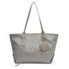 Patterned PU Tote Bag: Weighing 0.32kg, it has a textured PU finish, a spacious silhouette, and decorative elements like a circular charm. Perfect for adding a stylish, sophisticated touch to daily outings, workdays, or casual gatherings.