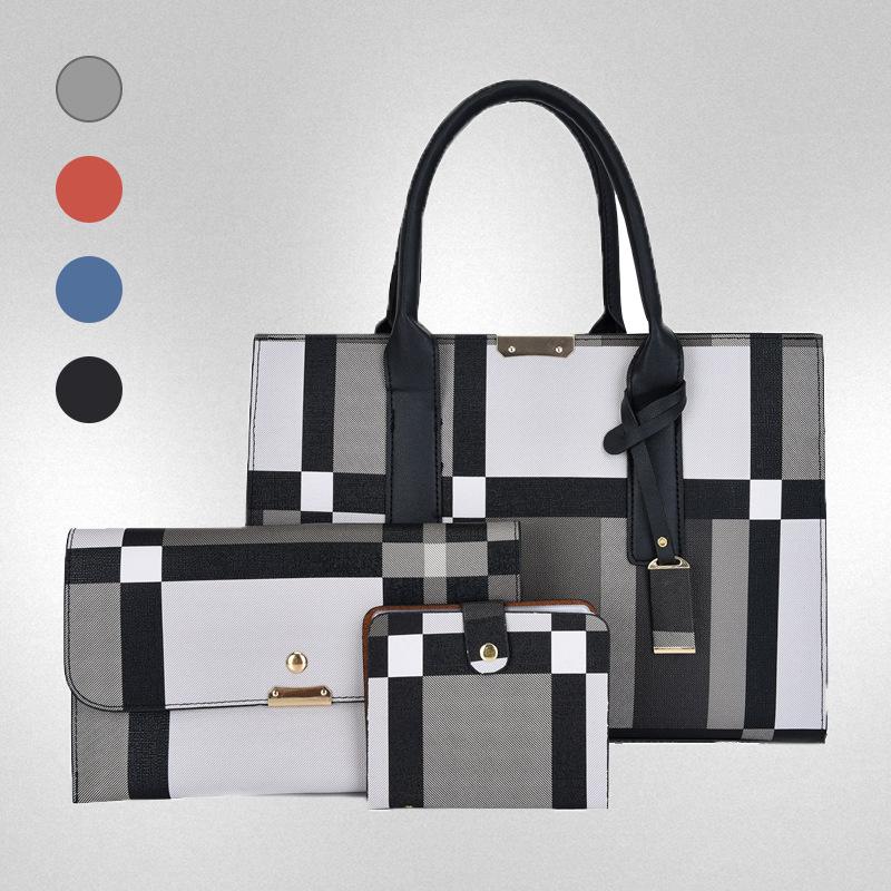 New Plaid Three-piece Set, Mother and Child Contrasting Colors Trendy Single Shoulder Handbag Women's Bag