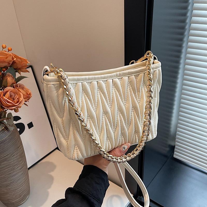 Fashion Pleated Underarm Bag Women's Versatile Messenger Bag New Niche Bucket Bag Shoulder Bag Small Square Bag