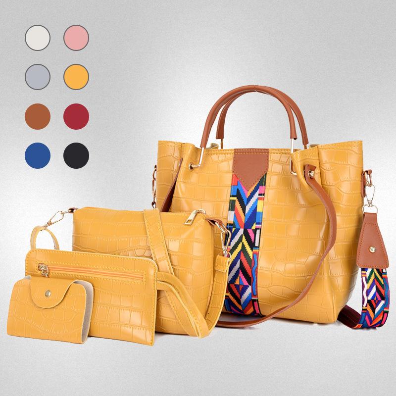 New Fashion Four-piece Mother and Child Bag Patent Leather Stone Pattern Splicing Contrasting Color One Shoulder Crossbody Handbag Colored Women's Bag