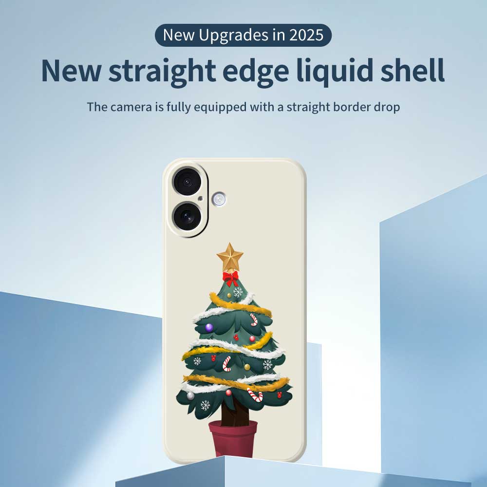 For iPhone 17 Case Christmas Tree Potted Plants Pattern Printing Straight Edge TPU Phone Back Cover