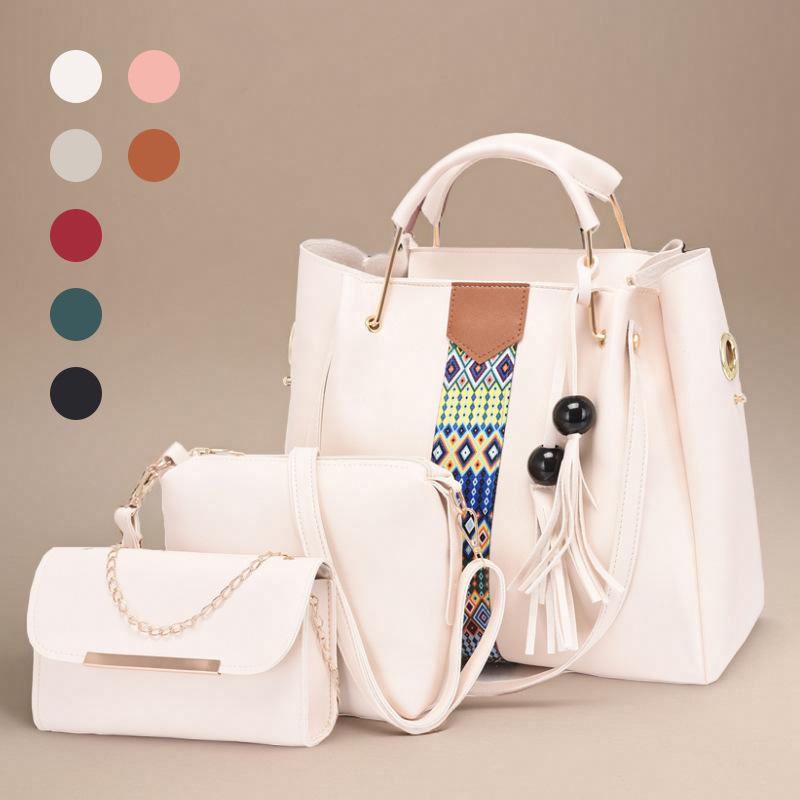 New Women's Bag Fashionable Three-piece Set, Mother and Child Bag Contrasting Color, Portable Shoulder Messenger Bag, Color Splicing Bucket Bag.