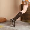 Women's Knee High Boots Fashion V-mouth Knight Booties Square Heels Belt Buckle High-heeled Winter Warm Short Plush Women Shoes