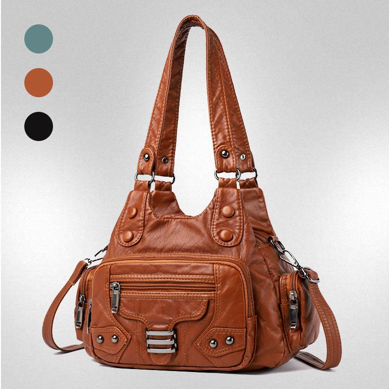 Washed Leather Women's Bag Handbag Retro Fashion Rivet Soft Leather Tote Bag Multi-pocket Large-capacity Messenger Bag