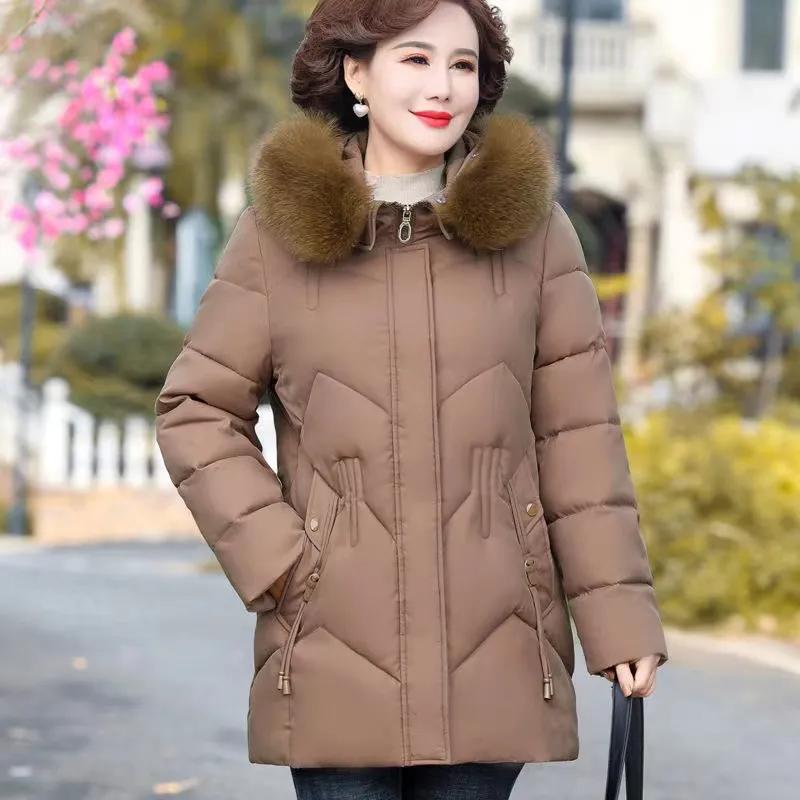 Women Winter Medium Long Thickened Warm Jacket Middle-aged Causal Plush Jacket Female Outwear