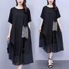 Ice Silk Striped Dress: Plus Size, Age-Defying, Loose Fit, Slimming Fashion