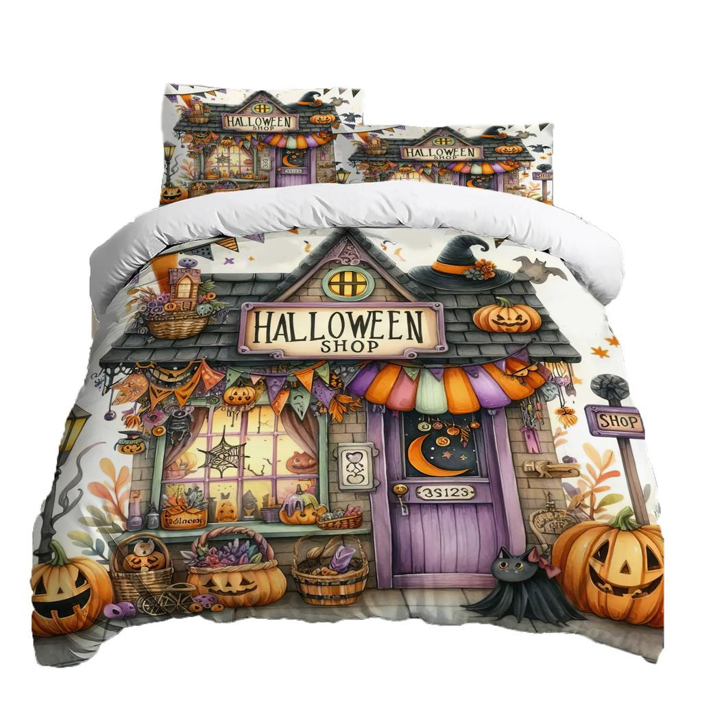 Halloween Three-piece Bedding Set Quilt Cover Pillowcase Brushed Fabric Thickened