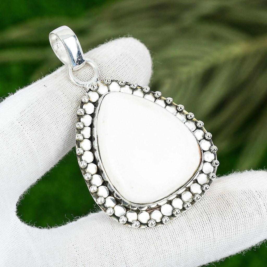 Mothers Day Deal Pear Scolecite Gemstone Sterling Silver Wife Pendant Jewelry