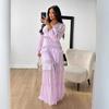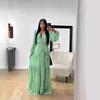 LYRIA Women Elegant Layered Ruffles Patchwork Long Dress Chic V Neck Puff Full Sleeves Split Maxi Dresses Fashion Lady Party Robes