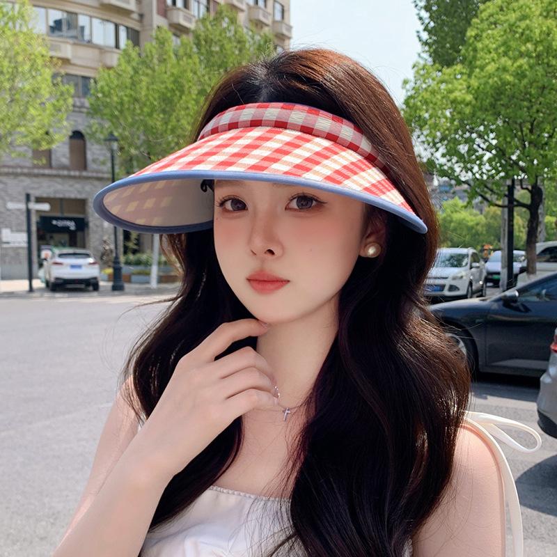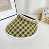 Dopamine Color Empty Top Sunscreen Hat Women's Summer Retro Plaid UV Protection Travel Big Brim Headband Hat