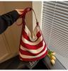 Bag Women's New Contrasting Color Woven Bag Fashionable Hollow Niche Light Luxury Tote Bag Vacation Beach Bag