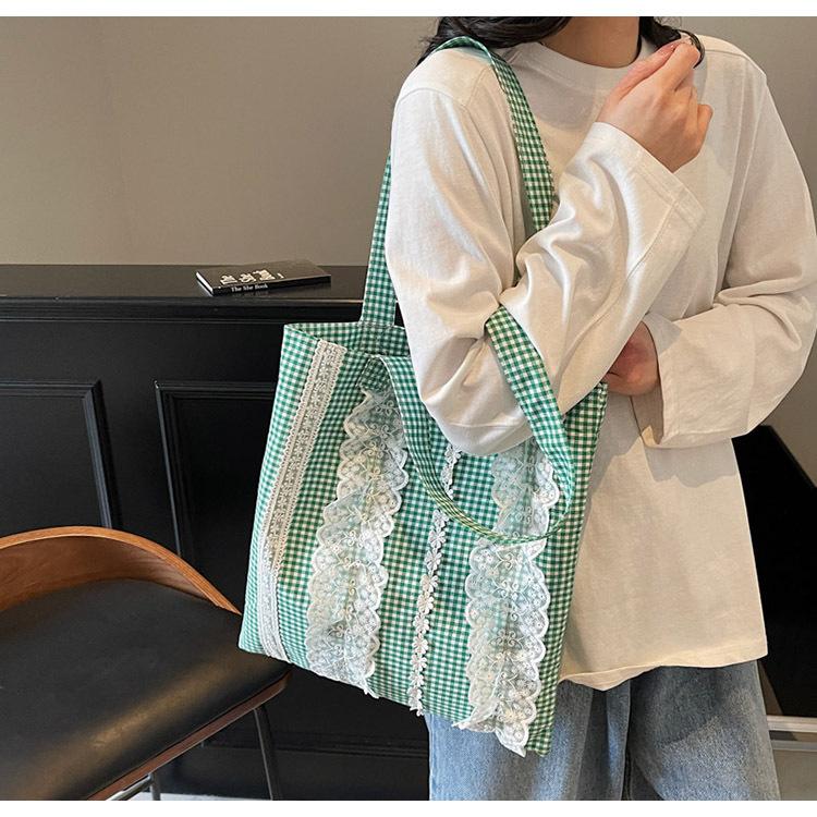 Lace Edge Bucket Bag Women's New Fashion Portable Tote Bag Small Fresh Shopping Commuter Bag