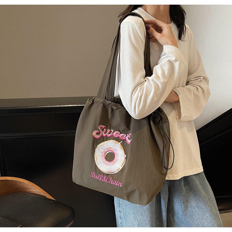 Embroidery Donut Nylon Bag Women's New Fashion Cartoon Commuter Bag Shoulder Handbag