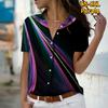 2025 Summer New Fashion Women's Simple Printed Short Sleeve V-neck Casual Button-down Shirt Top