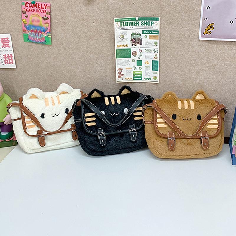 Cute Cat Face Plush Shoulder Messenger Bag For Women Lovely Beautiful Cartoon Handbag Crossbody Bags