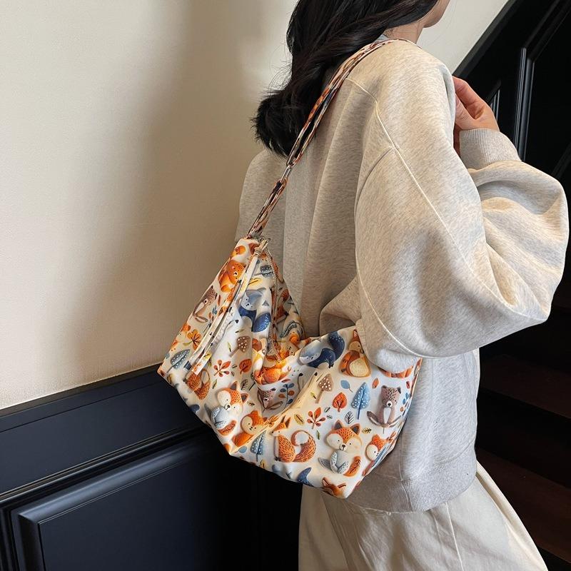 Lazy Cartoon Big Bag Women's New Casual Versatile Shoulder Messenger Bag Commuter Tote Bag
