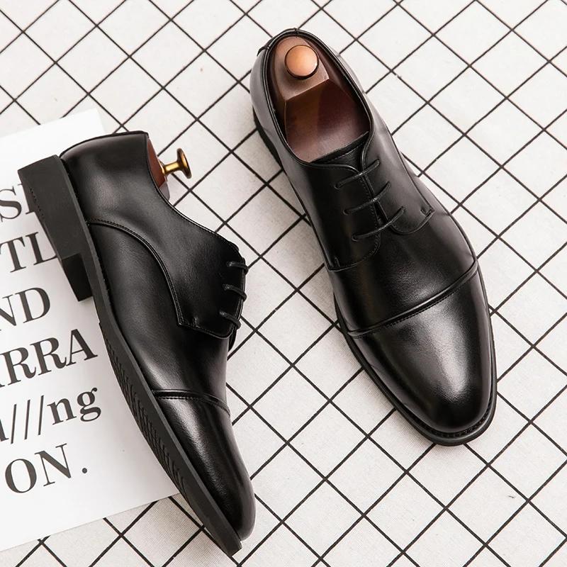 Classic Italian Style Mens Derby Formal Shoes Career Office Leather Shoes Pointy Toe Handmade Business Wedding Dress Shoes Men