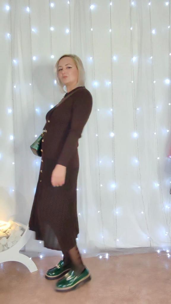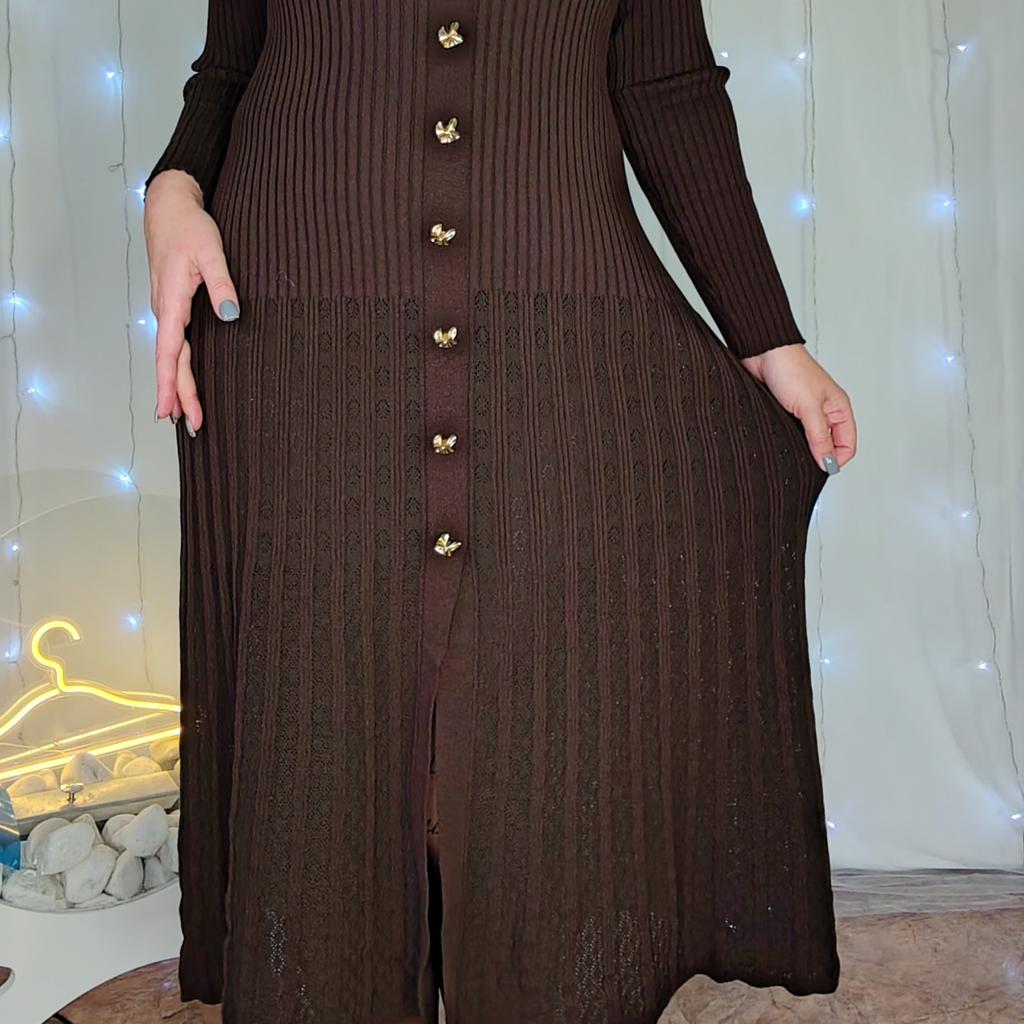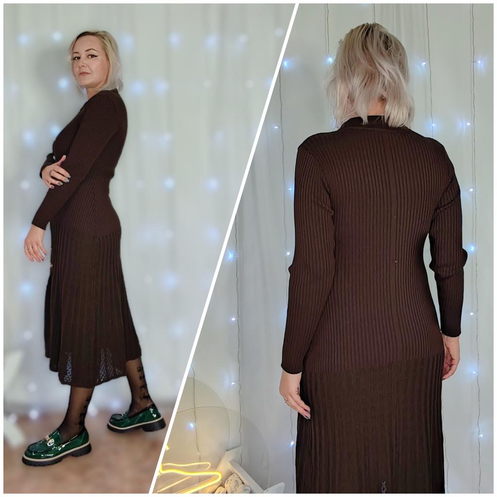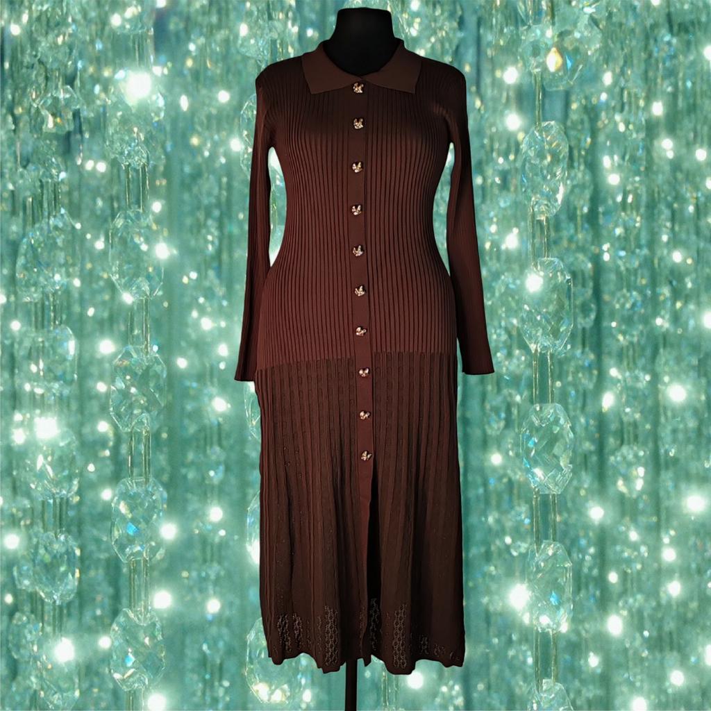 French Retro Turn-down Collar Long Sleeved Metal Buckle Dress for Women's Autumn Slimming Waist Knit Long Dresses