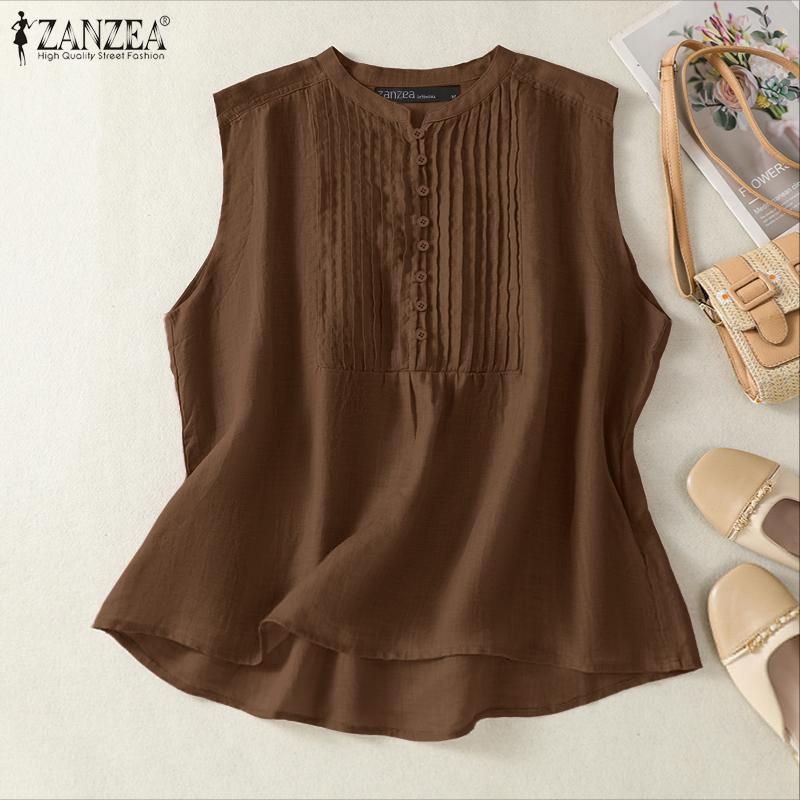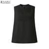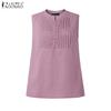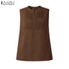 ZANZEA Women Summer Sleeveless Pleated Buttons Up Casual Tank Tops