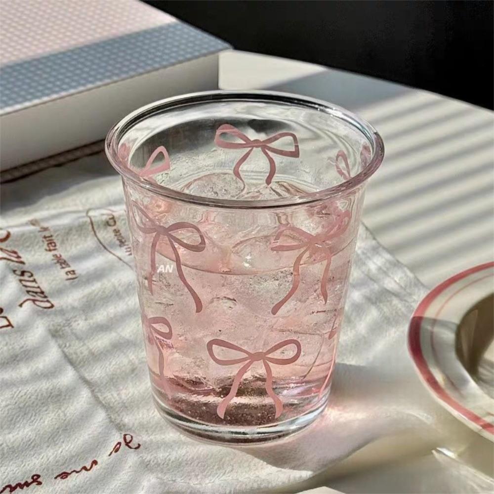Drinkware Glass Cup Pink Bow Transparent Mug New Drinking Cup Dessert